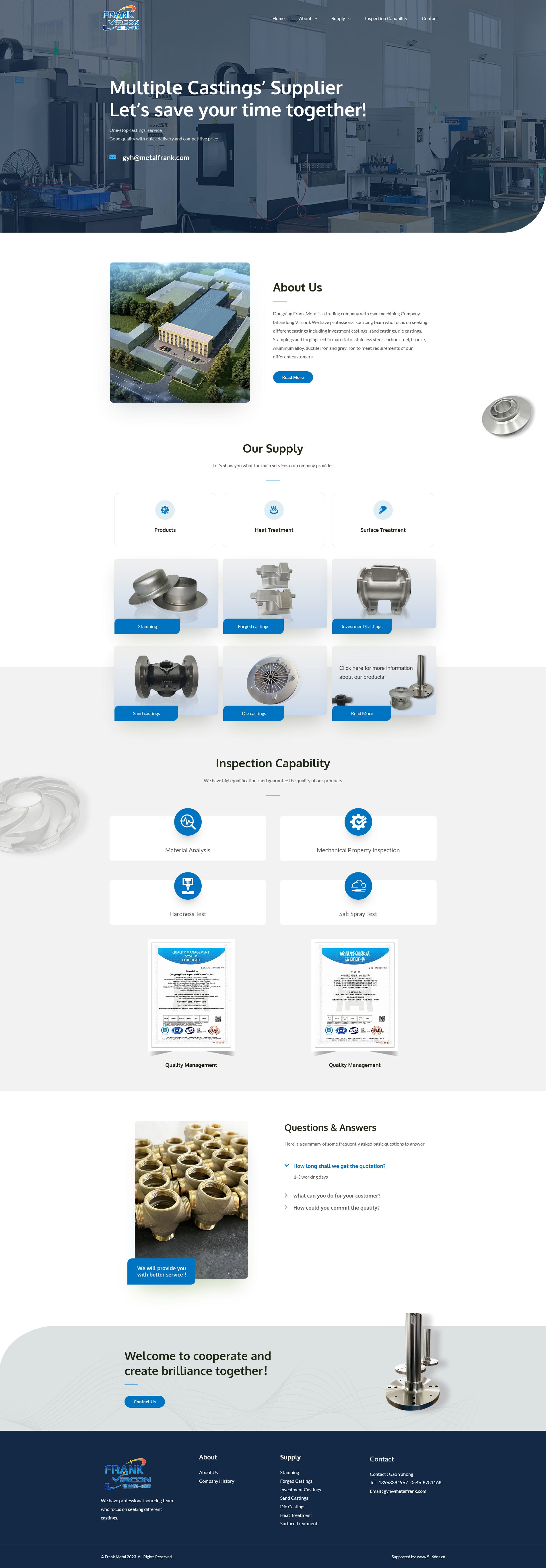 東營(yíng)福蘭科金屬有限公司是一家國(guó)際貿(mào)易公司,擁有自己的機(jī)械加工公司(山東威康)。公司擁有專業(yè)的采購(gòu)團(tuán)隊(duì),專注于尋找不同材質(zhì)的鑄件,包括不銹鋼、碳鋼、青銅、鋁合金、球墨鑄鐵和灰鐵等材質(zhì)的熔模鑄造件、砂型鑄造件、壓鑄件、沖壓件和鍛件,以滿足不同客戶的需求。